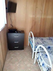 Отличный домик. Соответствует фотографиям. Есть две комнаты, есть небольшая кухня. В наличии посуда, ничего везти не надо. По запросу можно постирать вещи. Стоянка на закрытой территории. Также есть кондиционер, телевизор. Но мы телевизором не пользовались. До моря 10-15 минут спокойным шагом. Недалеко есть магнит. Хозяйка хорошая, по всем вопросам можно обращаться. Есть еще бассейн, можно в нем охладиться.
