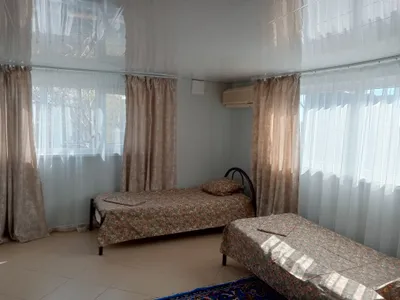 На территории имеется 3 просторных номера: 2 однокомнатных четырёх местных, 1 двухкомнатный для 7 человек. В каждом номере имеется санузел, сплит-система, телевизор, утюг, wi-fi, собственная кухня со всеми принадлежностями (посуда, плита, холодильник, чайник, микроволновка). Также имеется мангальная зона, детская площадка, место для парковки машины. Расположение объекта, сторона азовского моря.