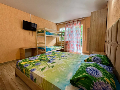 Отель Бирюза находится в удивительно красивом и живописном поселке Лермонтово Туапсинского района, в пяти минутах ходьбы от морского берега. К услугам наших гостей номера оборудованные всем необходимым для комфортного отдыха - телевизором, холодильником, кондиционером. В каждом номере индивидуальный санузел и душевая кабина. На первом этаже гостиницы Бирюза работает кафе-столовая где организуется 3х разовое комплексное питание. Уборка номеров производится по вашей заявке. Среди дополнительных услуг гостевого дома Бирюза новые большие бассейны взрослый 23х13м. - 300кв.м., детский… 10х10м. - 100кв.м., с зоной для загара, мангал, детская площадка, батут, теннисный стол, столики для отдыха, автостоянка. С детьми на территории гостиницы работают профессиональные аниматоры, для взрослых организуется дискотека. Возможен трансфер. Для удобства гостей на этаже есть чайник и гладильная доска с утюгом. Можно воспользоваться услугами нашей прачечной. До моря 5 минут ходьбы. А если вы приехали в отпуск с малышами, то можете выбрать пляж Морская сказка, напоминающий мелководную лагуну, где вода прогревается быстро, а купаться можно без боязни за детей. Вблизи нашего гостевого дома Бирюза расположен аквапарк, который подарит вам массу острых ощущений. Если вы мечтаете о том, чтобы провести незабываемый отпуск на берегу Черного моря в хорошем курорте с развитой инфраструктурой, то Лермонтово вам непременно подойдет. Ну а мы и вежливый, предупредительный персонал гостиницы Бирюза, сделаем все, чтобы ваш отдых прошел на высшем уровне.